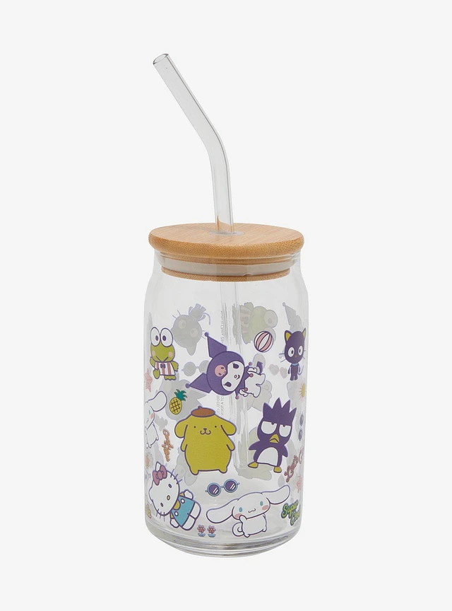 Sanrio Hello Kitty and Friends Character Print Glass Tumbler and Straw — BoxLunch Exclusive