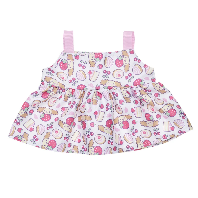 Give your Sanrio plush a BERRY sweet sense of style! This adorable stuffed animal dress features an all-over print pattern of Chiffon, strawberries and other yummy treats.