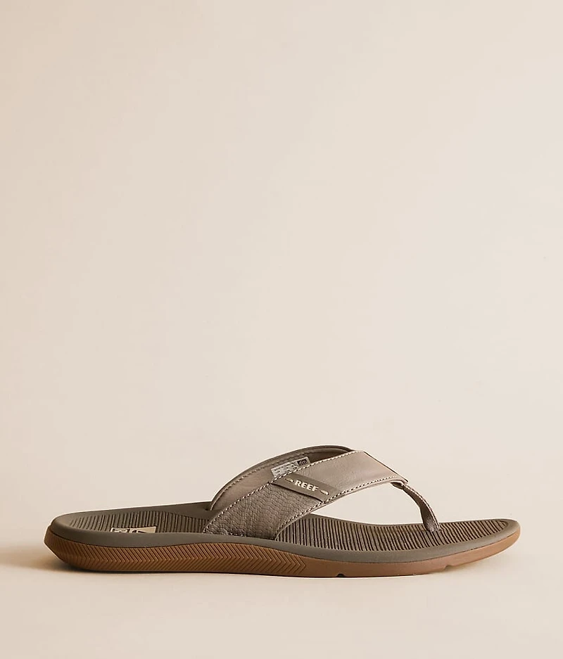 Faux leather strap flip Compression molded anatomic contoured footbed Rubber outsole for traction and durability