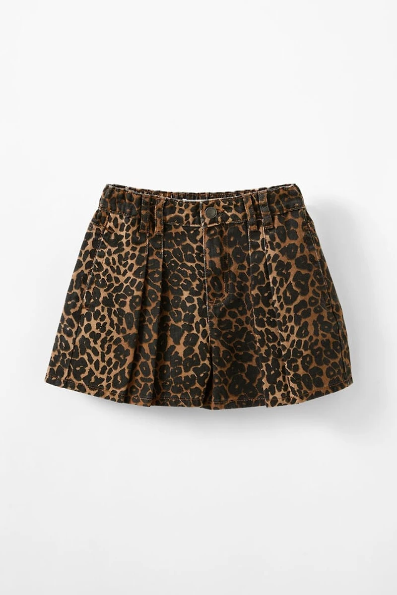 Everyday denim just levelled up. These pleated front shorts are made with heavyweight denim that holds its shape through play and weekend hangs. A relaxed fit and mid-rise waist keep things comfy, while the leopard print detail adds a playful twist. Pair with a denim jacket for an easy outfit. This pair is made for kids who like to move and explore.