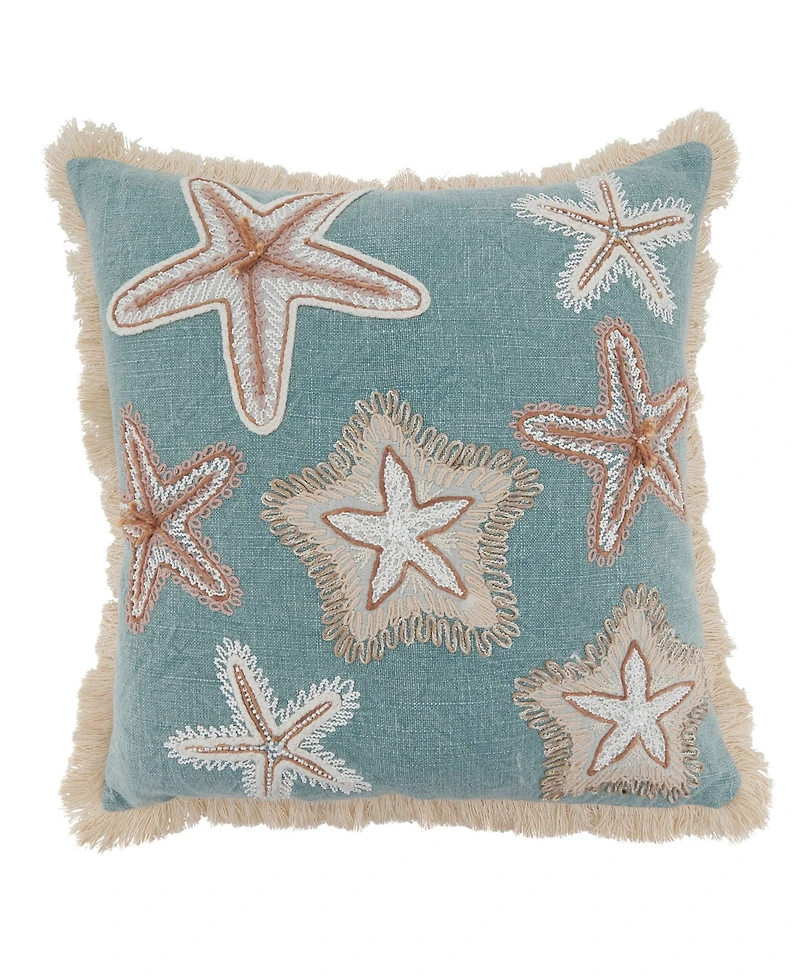 Saro Lifestyle Embroidered Starfish Fringe Decorative Pillow, 18" x 18"