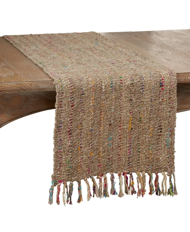 Saro Lifestyle Fringe Edge Striped Table Runner