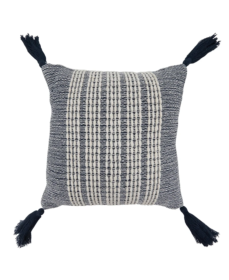 Add bold texture and relaxed coastal style with this Woven Stripe Cotton-Wool Decorative Pillow. Raised woven stripes create rich dimension while deep navy tassels bring a playful, handcrafted finish that layers beautifully on sofas, beds, and accent chairs.