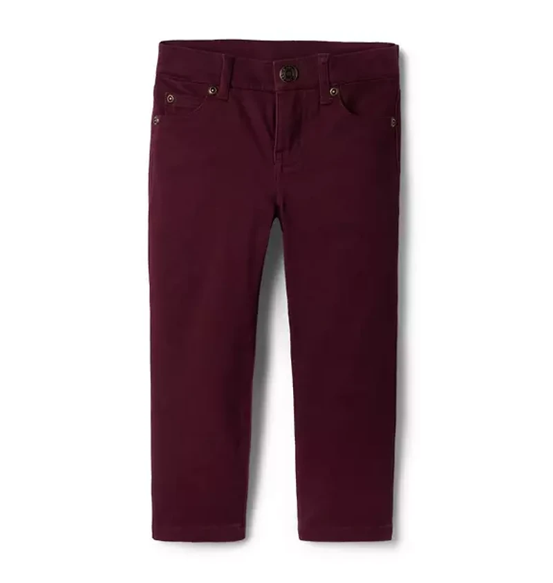 Tailored for cool days and standout style, our brushed sateen pant with a classic straight leg fit. So soft and cozy, it's ready for any occasion. 97% Cotton/3% Spandex Sateen Zip Fly With Button Closure Front And Back Pockets Adjustable Waist (Sizes 18-24M - 12); Elasticized Back Waist (Sizes 6-12M - 12-18M) Machine Washable; Imported