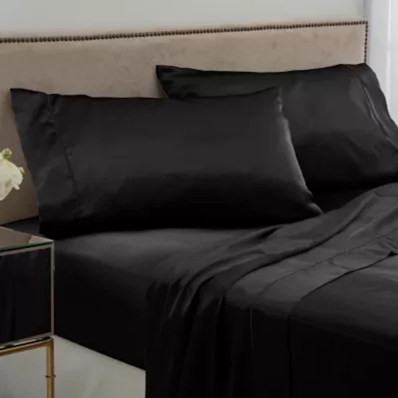 Transform your bedtime routine with the silky-soft indulgence of the Martex Elegance Satin Sheet Set. Crafted from satin fibers, these sheets offer a spa-like experience with their buttery feel while being easy to care for and resistant to wrinkles. Designed to keep your hair frizz-free and your skin glowing, the no-tug fabric ensures a restful night's sleep. The Martex Elegance Collection brings a touch of luxury to your everyday routine. California King Sheet Set : 4 Pieces King Sheet Set : 4 Pieces Twin Sheet Set : 3 Pieces Queen Sheet Set : 4 Pieces Full Sheet Set : 4 Pieces King Pillowcases : 2 Pieces Standard Pillowcases : 2 Pieces 120 Solid Country of Origin: China Imported Product Specifications Twin Sheet Set Dimensions: Flat Sheet: 68"W x 96"L, Fitted Sheet: 39"W x 75"L, Pocket: 15"H fits mattresses up to 18" Deep, Pillowcases: 20"W x 30"L Full Sheet Set Dimensions: Flat Sheet: 85"W x 96"L, Fitted Sheet: 54"W x 75"L, Pocket: 16"H fits mattresses up to 19" Deep, Pillowcases: 20"W x 30"L Queen Sheet Set Dimensions: Flat Sheet: 94"W x 104"L, Fitted Sheet: 60"W x 80"L, Pocket: 16"H fits mattresses up to 19" Deep, Pillowcases: 20"W x 30"L King Sheet Set Dimensions: Flat Sheet: 110"W x 104"L, Fitted Sheet: 78"W x 80"L, Pocket: 16"H fits mattresses up to 19" Deep, Pillowcases: 20"W x 40"L California King Sheet Set Sheet Set Dimensions:Flat Sheet: 108"W x 102"L, Fitted Sheet: 72"W x 84"L, Pocket: 15"H fits mattresses up to 18" Deep, Pillowcases: 20"W x 40"LKing Pillowcases Dimensions:20"W x 40"LStandard Pillowcases Dimensions:20"W x 30"L Material & Care 100% Polyester Polyester Machine washable