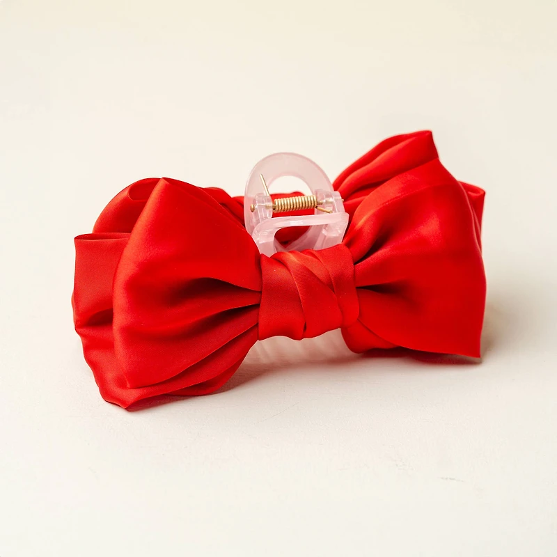 Satin Bow Claw Clip-Red