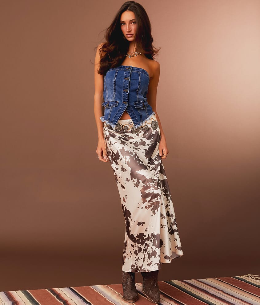 Satin Cow Print Maxi Skirt in Franklin, TN