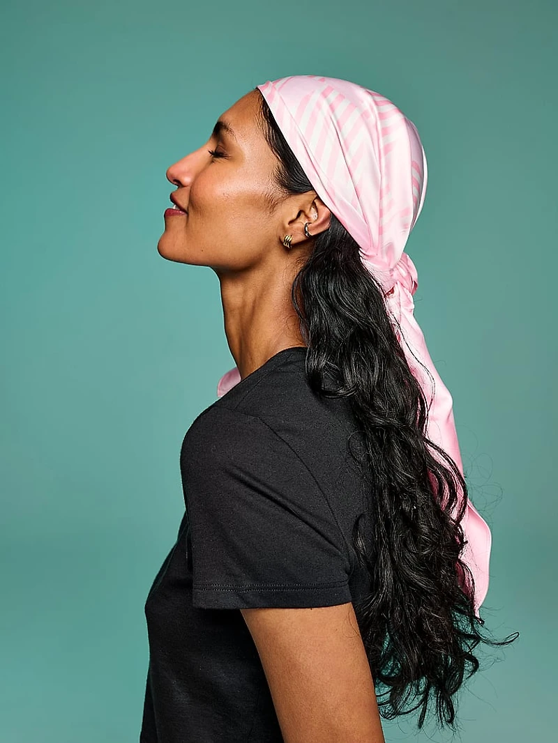 Endless ways to style. Elevate your wardrobe with this versatile Satin Scarf that you can wear more than five different ways: Use it as a bag scarf, bandana, neck scarf, scarf top, or hair accessory depending on the day.