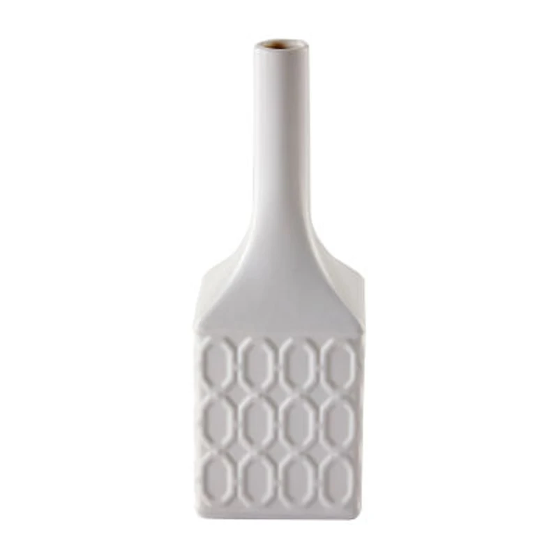 Lithgow is part of the Vern Yip by SKL Home Collection. This collaboration with famed interior designer, Vern Yip, and SKL Home, brings a modern twist to traditional patterns, mixing fashion and function. Lithgow is a versatile design that focuses on clean lines and geometric patterns to easily work with almost any style. This sculpted ceramic vase features a white satin, matte glaze and a long, narrow fluted neck. Designed to hold a single flower or small group of stems. Shop the coordinating Lithgow collection to complete the look. SKL Home brings personality, fun and flair to the most intimate spaces in your home with products ranging from bath accessories and shower curtains, to towels, curtains and beyond. Whether your style is upbeat and modern, or classic and cozy, SKL Home provides a look to compliment almost any decor. Combining 40+ years experience, global design inspiration and premium fabrications, SKL Home continues to lead the way in home accessories.