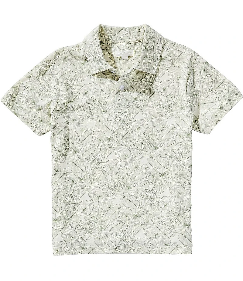 From Scene&Heard, this polo shirt features: Allover topical leaf print Polo collar Short sleeves 2-button placket Pullover construction Cotton Machine wash/tumble dry Imported.