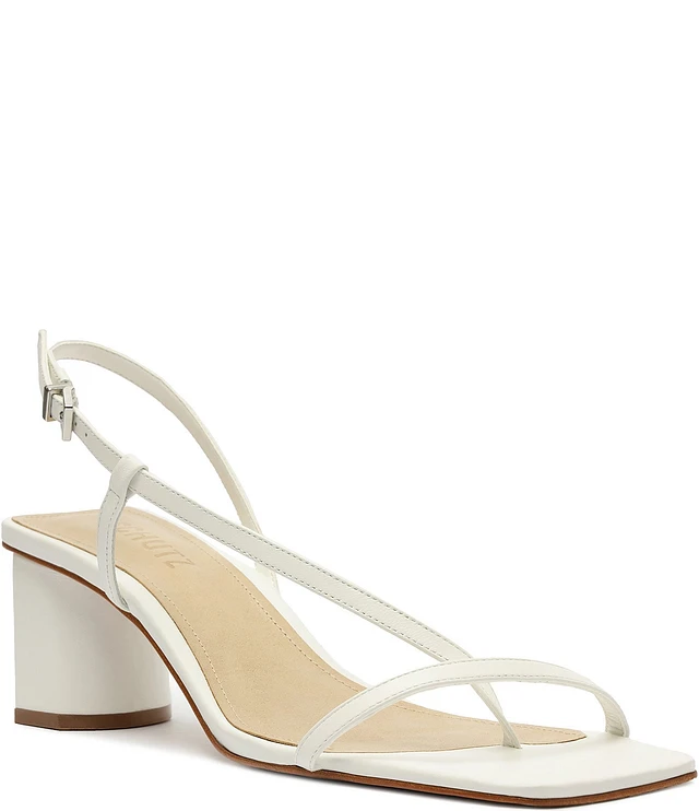 Schutz Heloise Mid Block Leather Slingback Thong Dress Sandals