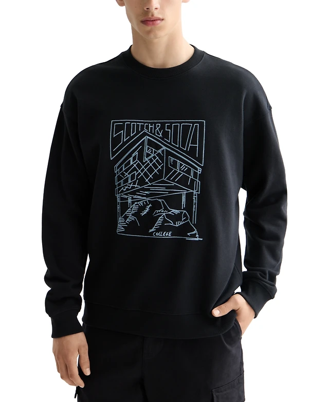 Scotch & Soda Men's Relaxed Fit Long Sleeve Logo Graphic Sweatshirt
