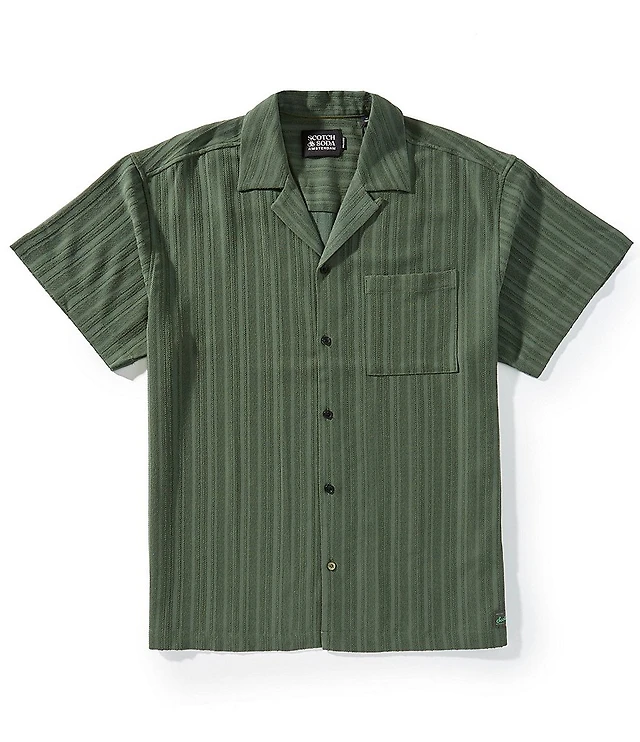Scotch & Soda Relaxed-Fit Tonal Stripe Short Sleeve Woven Camp Shirt