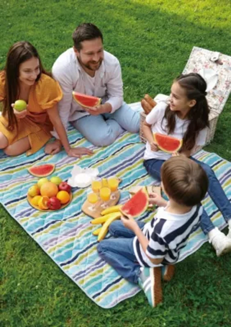 Enhance your outdoor adventures with the stylish and versatile Scout Bluehemian Rhapsody Outdoor Blanket. Designed with practicality and flair, this colorful outdoor blanket is perfect for all your activities, whether you're heading to the beach, planning a picnic, or cozying up around the campfire. Scout’s commitment to understanding and improving the lives of women shines through in the thoughtful design of this must-have family-sized blanket. Crafted with durable 100% microfiber polyester on both the face and reverse, and filled with soft, insulating polyester, this blanket offers both comfort and resilience. The lightweight yet plush design ensures it’s easy to carry while providing a cozy layer against cool breezes. Whether you’re enjoying the great outdoors or simply lounging in your backyard, this camping blanket delivers comfort and style. With its eye-catching Guys and Dots design, this blanket brings a vibrant and playful touch to any setting. It’s spacious enough to accommodate the whole family, measuring 60 inches wide by 72 inches long, making it an ideal choice for group activities. Durable stitching and high-quality materials ensure it stands up to repeated use, while its compact design allows for easy packing and storage. The OEKO-TEX Standard 100 Certified label guarantees that this blanket is free from harmful chemicals and safe for use by everyone in your family. Whether you’re wrapping yourself up after a swim or spreading it out for a picnic in the park, you can feel confident knowing it’s made with your health and comfort in mind. Scout’s playful yet practical approach to design ensures that this picnic blanket meets all your needs, blending convenience, style, and durability into one must-have accessory. The machine-washable fabric makes cleanup a breeze, so you can spend less time worrying about stains and more time enjoying your adventures. Geometric Imported Product Specifications 72x60 Material & Care Polyester Polyester Machine washable