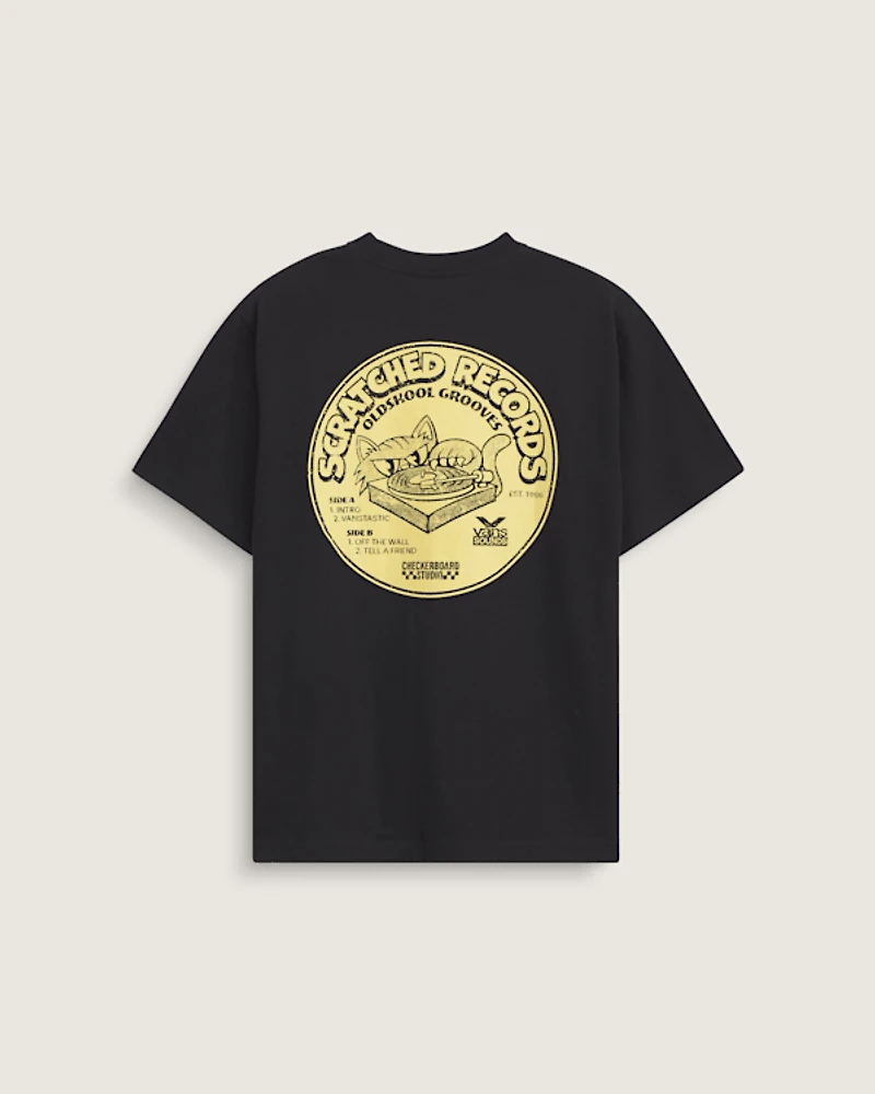 Go vinyl in the Scratched Records T-Shirt, with screen print artwork for long-lasting design featuring a Vans music note logo on the front, and the kind of grooves only records can produce on the back. Short sleeves make for casual, everyday style, while a crewneck gives a classic look.