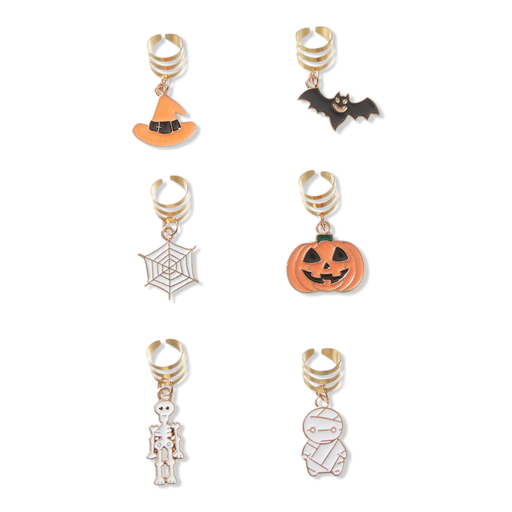 HALLOWEEN HAIR CUFF 6PK. Features: Perfect for ponytails, updos, locs, and braids. Secure yet comfortable hold. Assorted charms conjure up Halloween style. : :