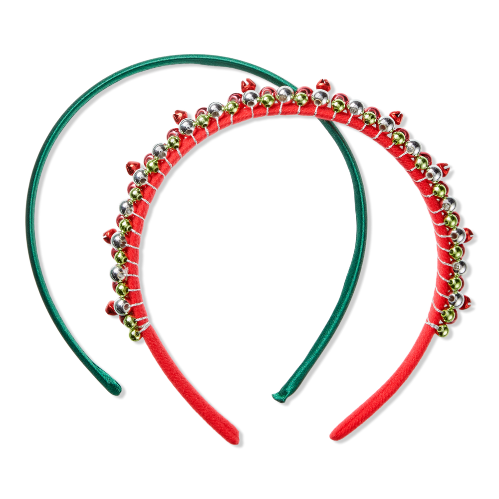 HOLIDAY 25 BELL HEADBANDS 2PK. Features: One red with jingle bells and baubles, one solid green. Tiny bells jingle with every step. Thin, lightweight bands are comfy all day. Stack together or wear separately. Perfect for parties, photos, or festive fun. Add instant holiday spirit to any look. : :