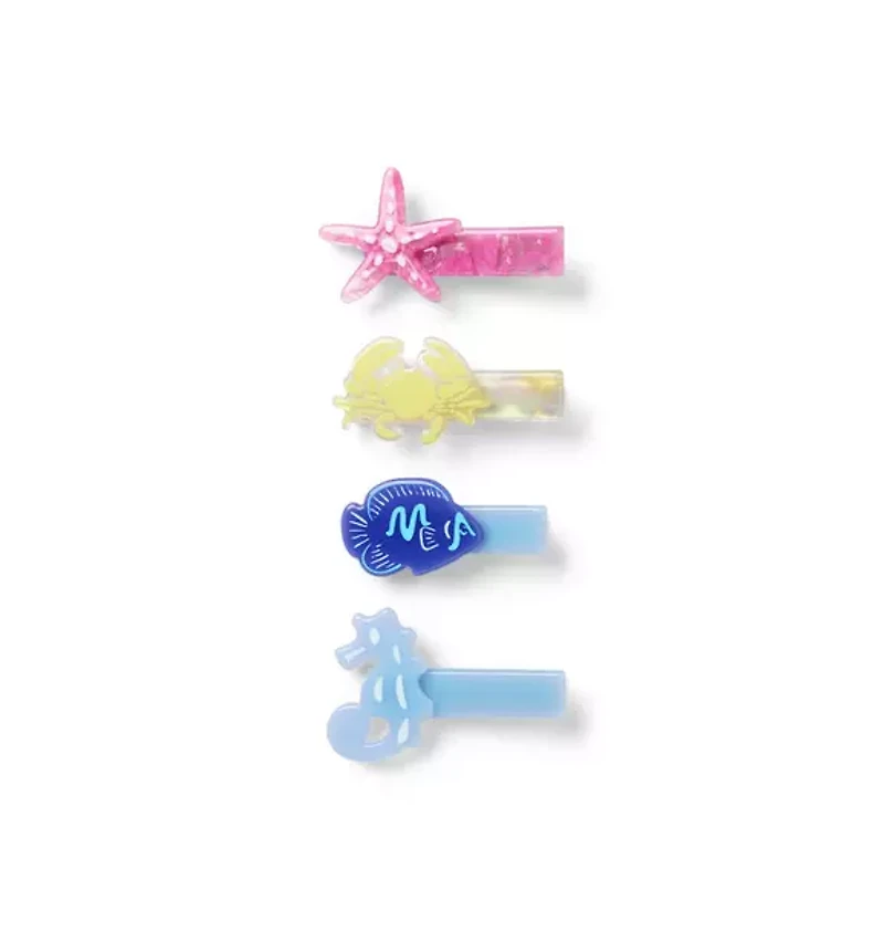 Add a splash of style to their look with our barrette set featuring colorful sea friends. Manmade Material Spot Clean; Imported