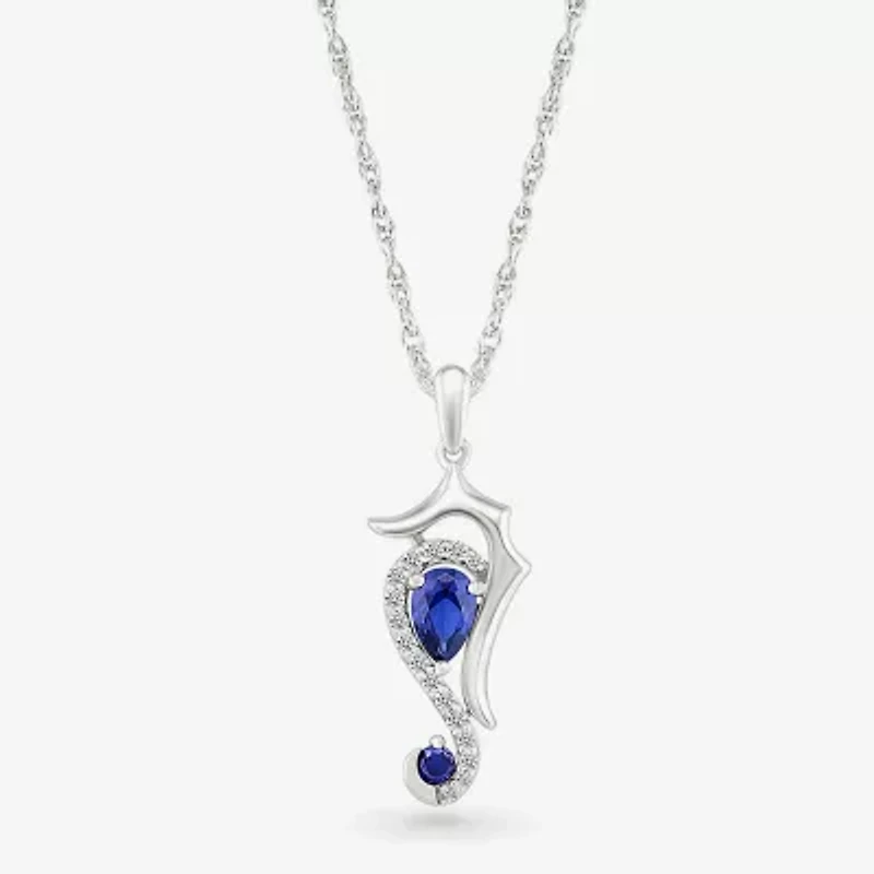 Sea Horse Womens Lab Created Blue Sapphire Sterling Silver 18 Inch Pendant Necklace