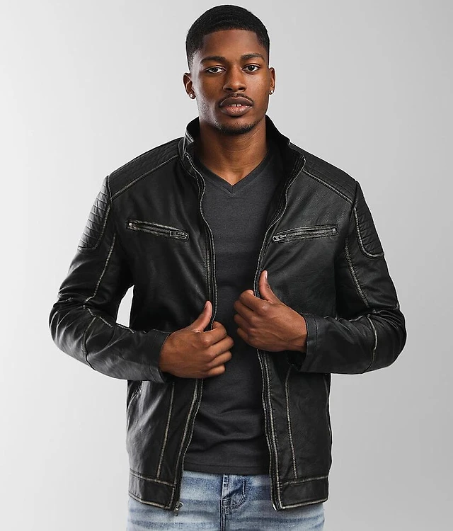 Distressed Faux Leather Jacket