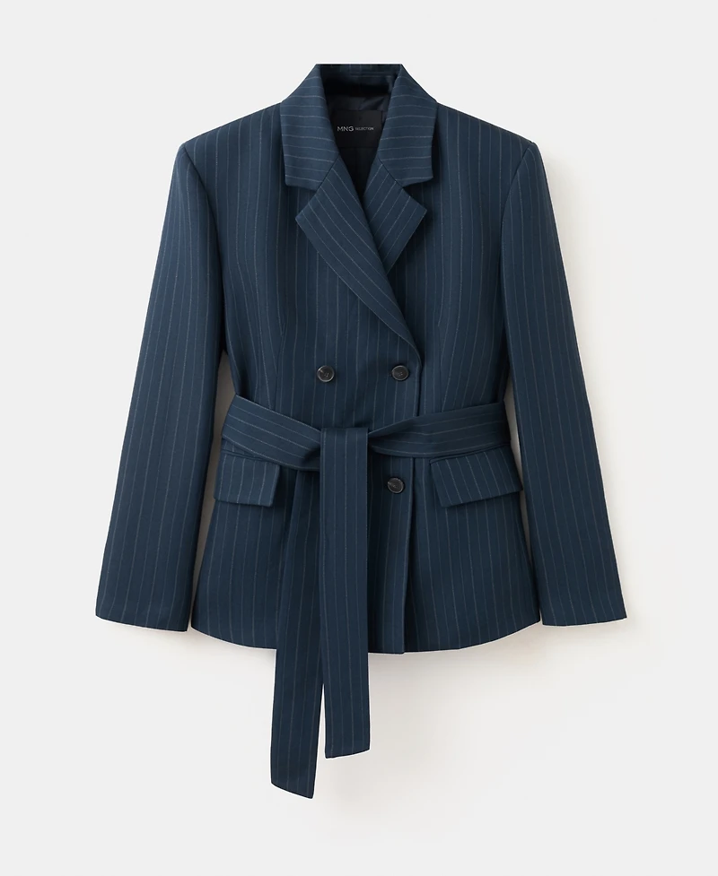 Selection Mango Women's Pinstriped Belted Blazer