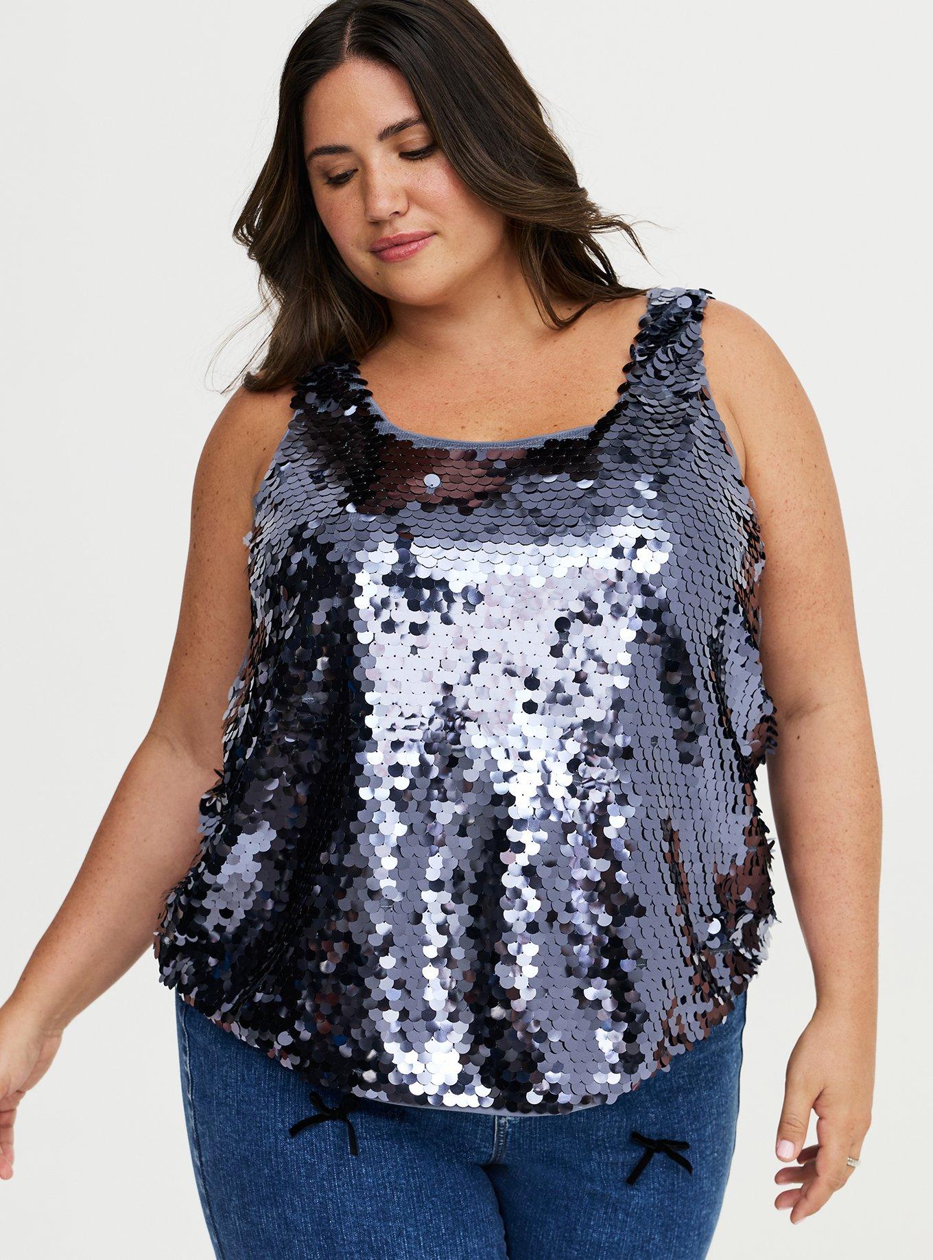 FIT Measures 29'' from shoulder (size 2). MATERIALS + CARE Sequin woven fabric. 100% polyester. Machine wash cold. Dry low. Imported. DETAILS Scoop neckline. Sleeveless. Sequin detail.