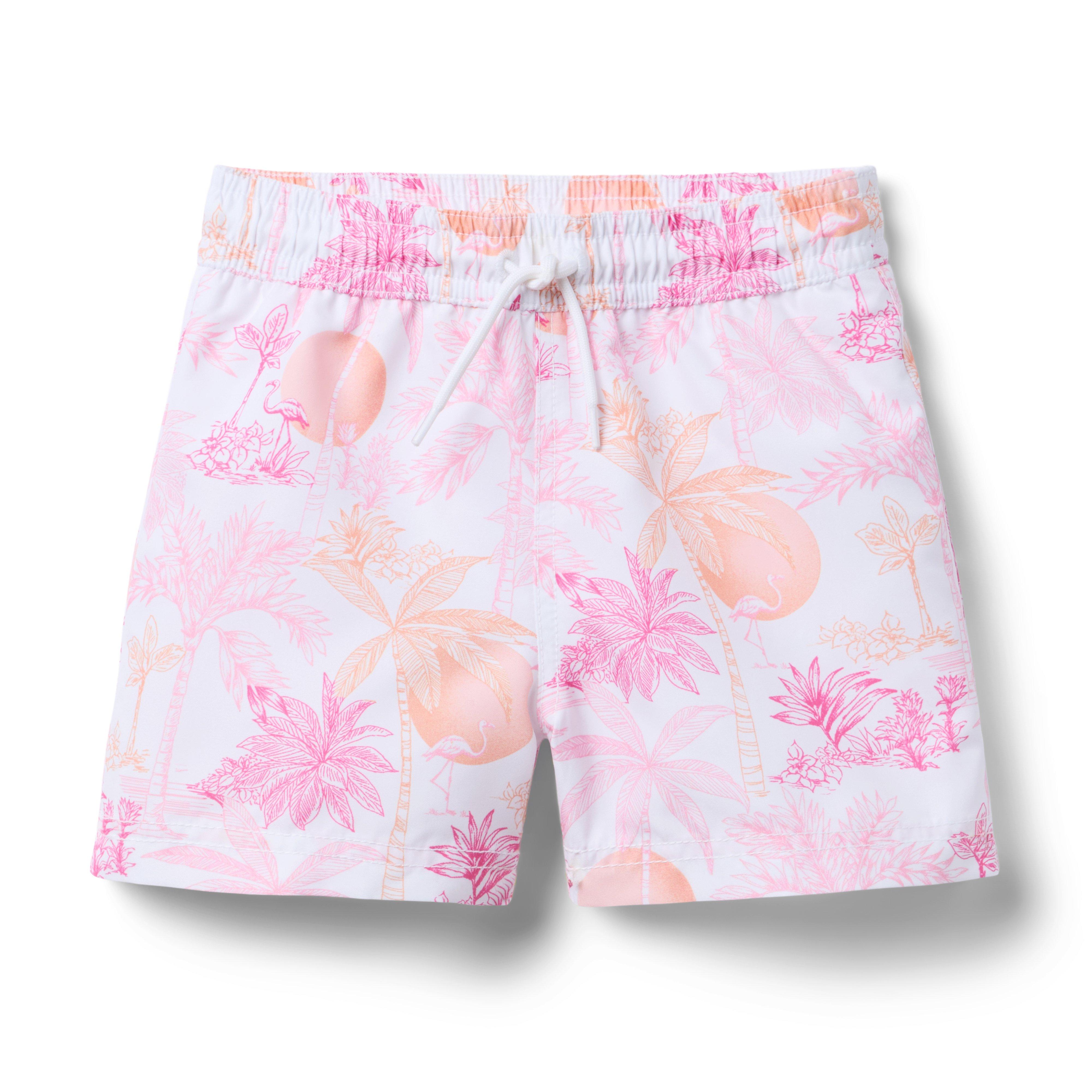 Vacations are a toile print away in this swim trunk from our limited-edition collection with professional athlete, entrepreneur and mom, Serena Williams. Designed with UPF 50+ sun protection and responsibly made with recycled fabric. 100% Recycled Polyester; Lining: 100% Polyester Fully Lined; Mesh Liner UPF 50+ Sun Protection; Chlorine Resistant Touch-Close Back Pocket; Inseam: 2 ¼" Elasticized Waist; Functional Drawstring Matching Family Styles Available Machine Washable; Imported