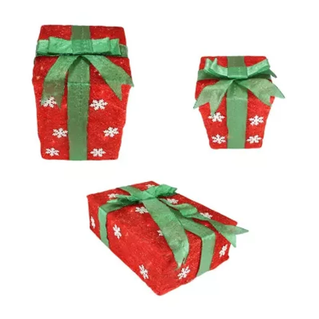Northlight Set Of 3 Lighted Red With White Snowflakes Gift Boxes Decorations Christmas Yard Art
