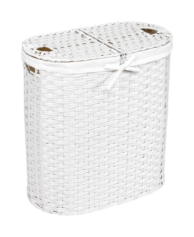 Seville Classics Handwoven Lidded Oval Double Laundry Hamper