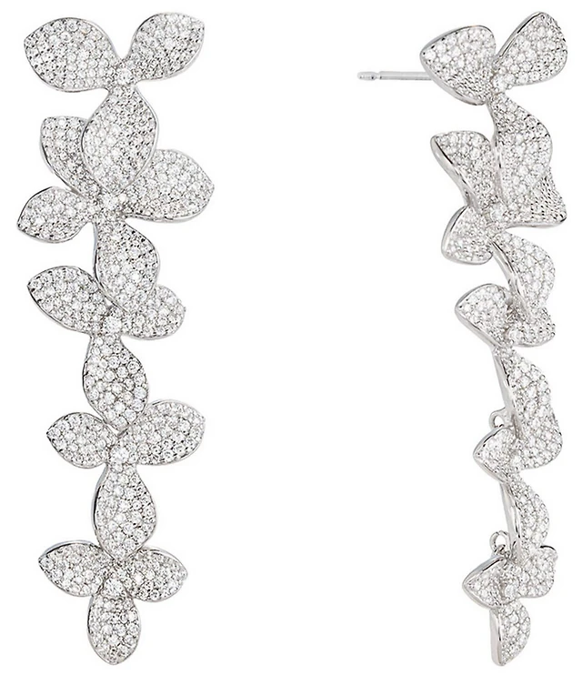 SHASHI Lilliana Floral Rhinestone Statement Linear Earrings