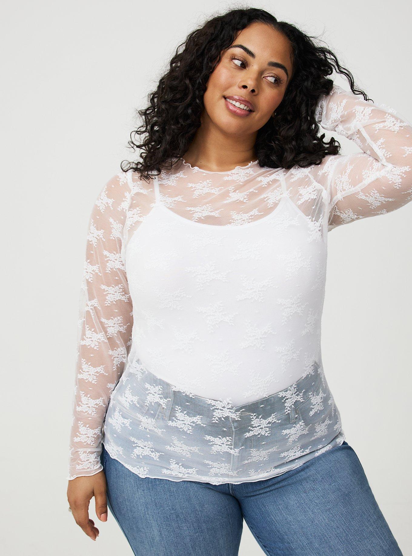 Sheer Lace Long Sleeve Crew Top