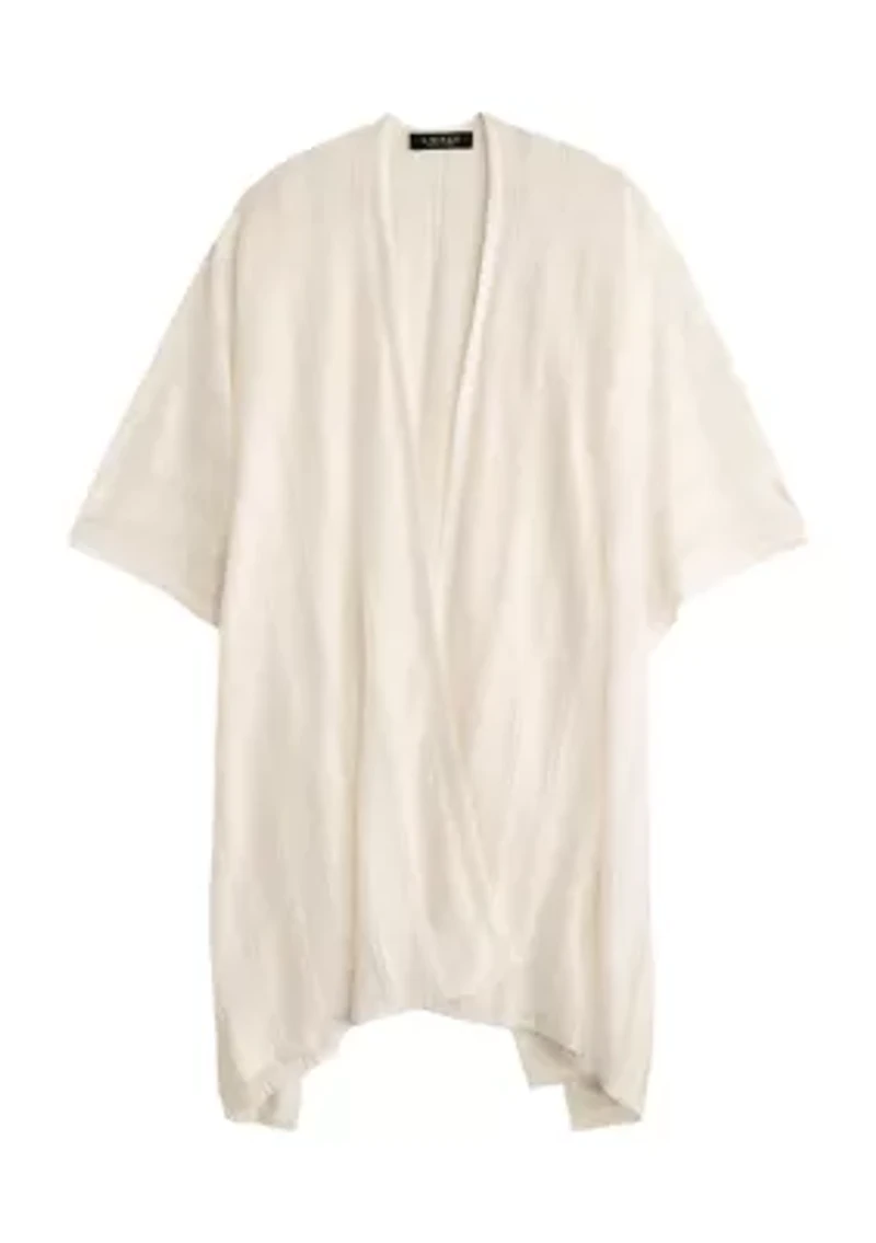 The Sheer Stripe Ruana, made from a soft cotton blend, combines breathability with an elegant drape. Its subtle sheer stripe pattern adds texture and visual interest, making it a versatile layering piece for both casual and elevated looks. With its lightweight construction, this ruana offers effortless style and comfort, perfect for transitioning between seasons. The relaxed silhouette enhances its chic, laid-back appeal, making it a must-have addition to any wardrobe. Open front 3/4 kimono sleeves Imported Product Specifications 60" L Material & Care Cotton, rayon Hand wash