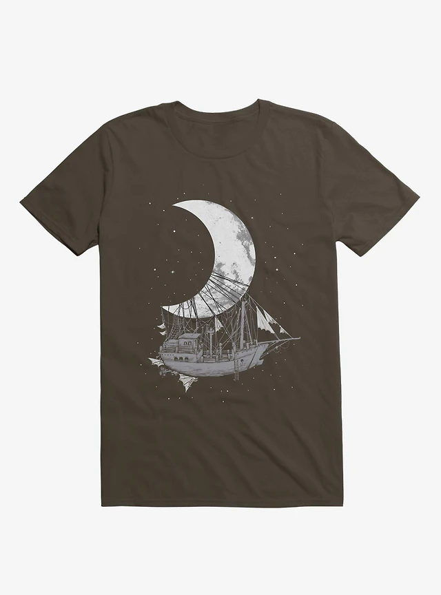 Ship Capturing Moon Brown T-Shirt