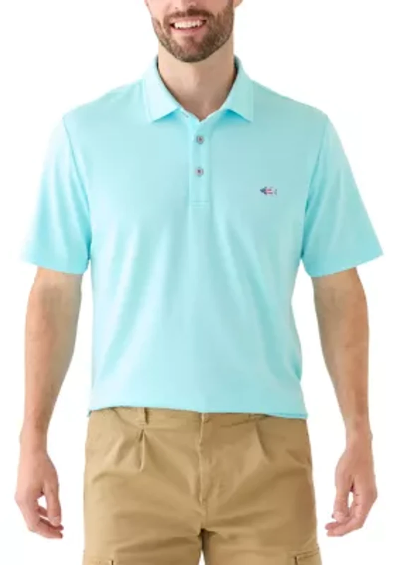 Designed for the water but sharp enough for the green, this breathable polo keeps you cool, dry and comfortable from lake to clubhouse. Pullover Button-down collar Short sleeves Imported Belk Exclusive Material & Care 100% polyester Machine washable