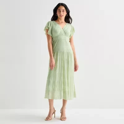 City Triangle Womens Juniors Short Sleeve Lace Fit + Flare Dress