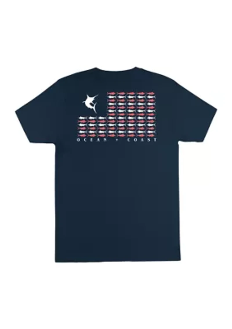 A marlin-accented flag lends outdoorsy Americana appeal to this Ocean + Coast® t-shirt. Pullover Crew neck Short sleeves Imported Belk Exclusive Material & Care Cotton Machine washable