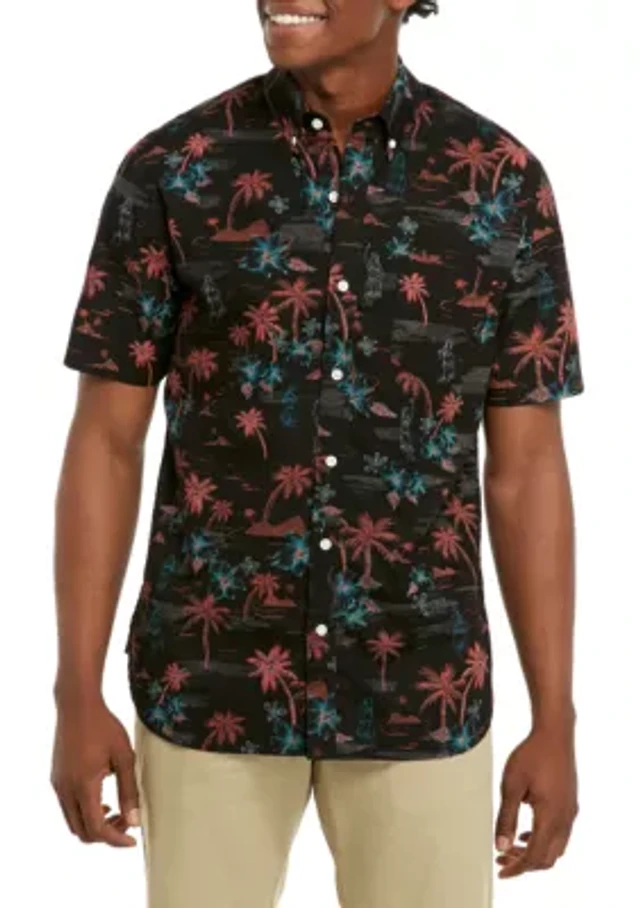 PX Clothing Short Sleeve Floral Printed Camp Collar Poplin Shirt