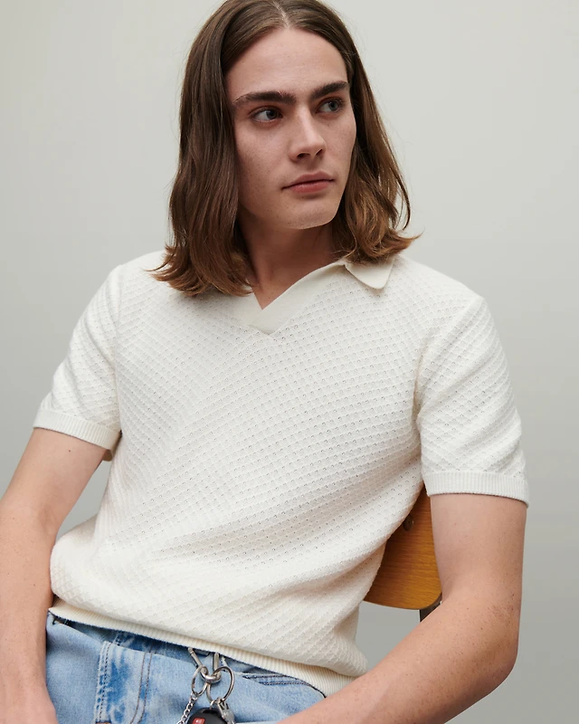 Geo Pointelle Cotton Short Sleeve Sweater Polo