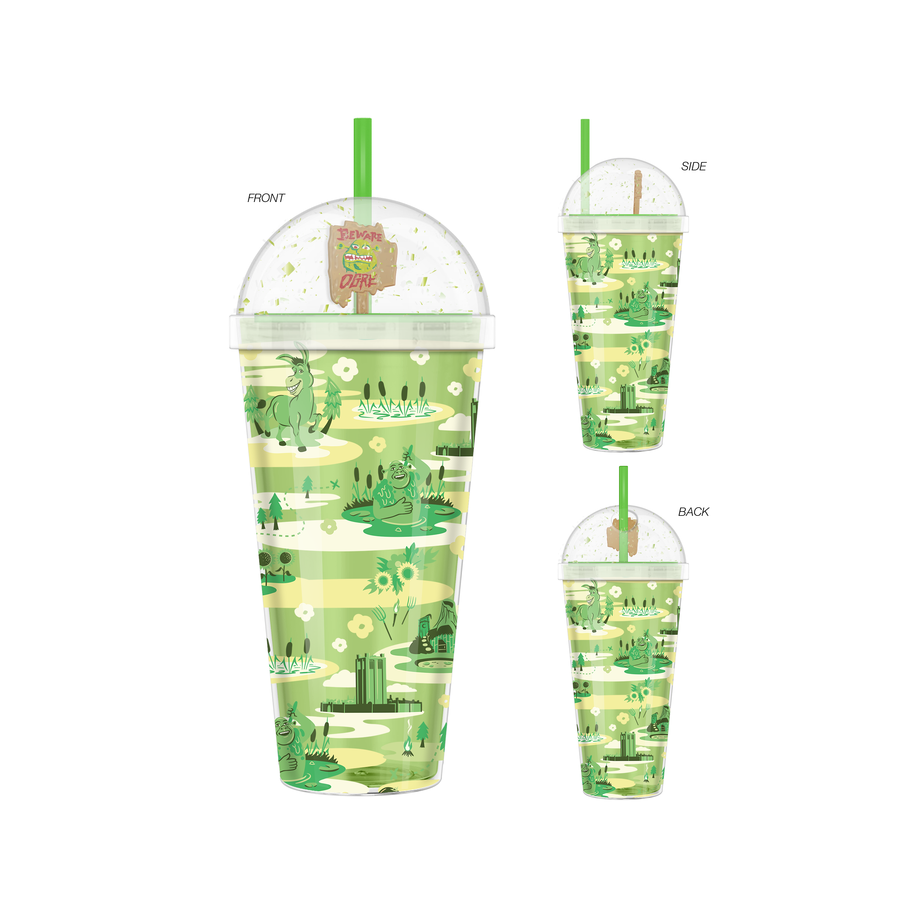 There's just you and your swamp with this unique Shrek tumbler! This Shrek 24oz. Dome Top Travel Tumbler features a unique dome top full of glitter and a mini Shrek inspired figure. A must have for all Shrek fans and collectors!