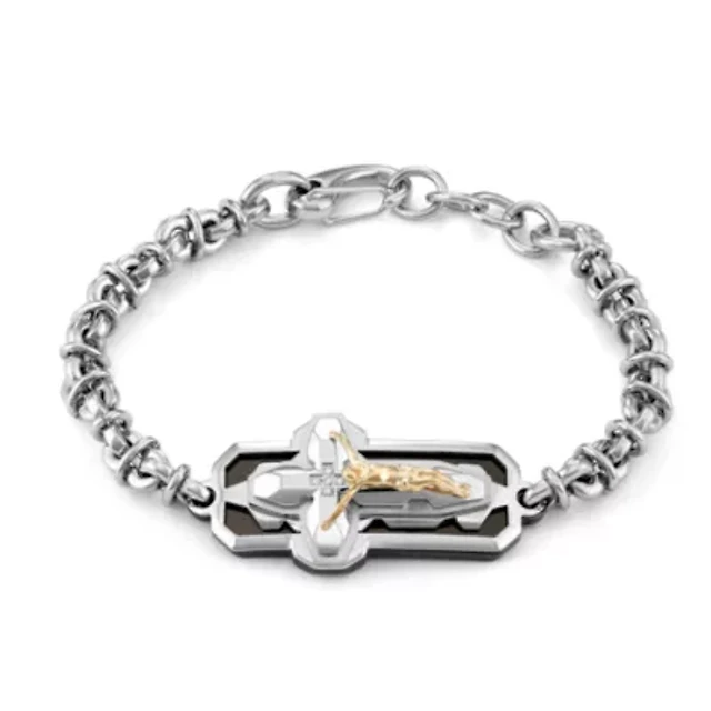 Sideways Mens Stainless Steel 9 Inch Link Cross Chain Bracelet