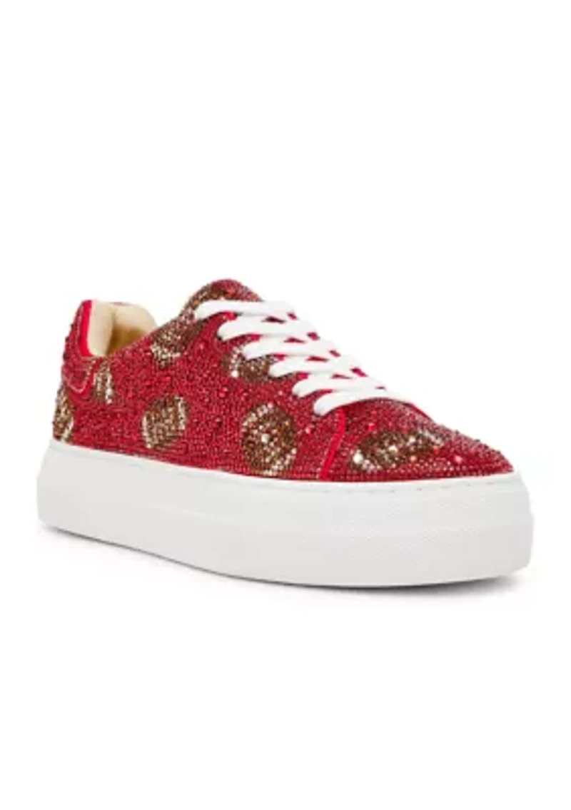 Put a little sparkle in your step with the SIDNYall-over rhinestone platformsneakers. Thesesparklysneakers can be paired with your best dress or favorite jeans,offering a combination of glamour and stylish comfort.TheSIDNYrhinestone shoeis available in a variety of captivating colors and prints to make any look a little more luxurious! Lace-up closure Padded insole Imported Imported Product Specifications 1" heel 1.5 in. M Material Synthetic, Rhinestone Fabric