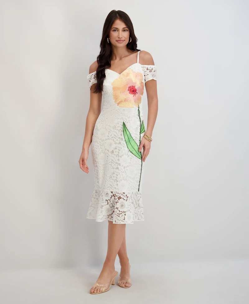 Siena Women's Embroidered Lace Sweetheart Neck Midi Dress