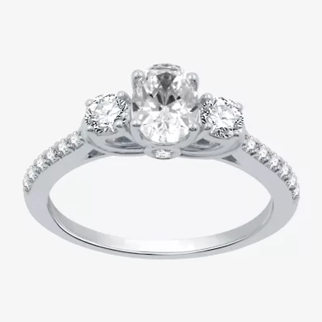 Signature By Modern Bride (H-I / I1) Womens 1 1/4 CT. T.W. Lab Grown White Diamond 10K Gold Oval Side Stone 3-Stone Engagement Ring