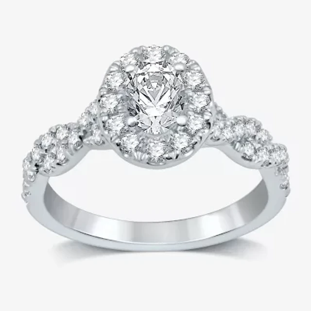 Signature By Modern Bride (H-I / I1) Womens 1 1/4 CT. T.W. Lab Grown White Diamond 10K Gold Oval Side Stone Halo Engagement Ring