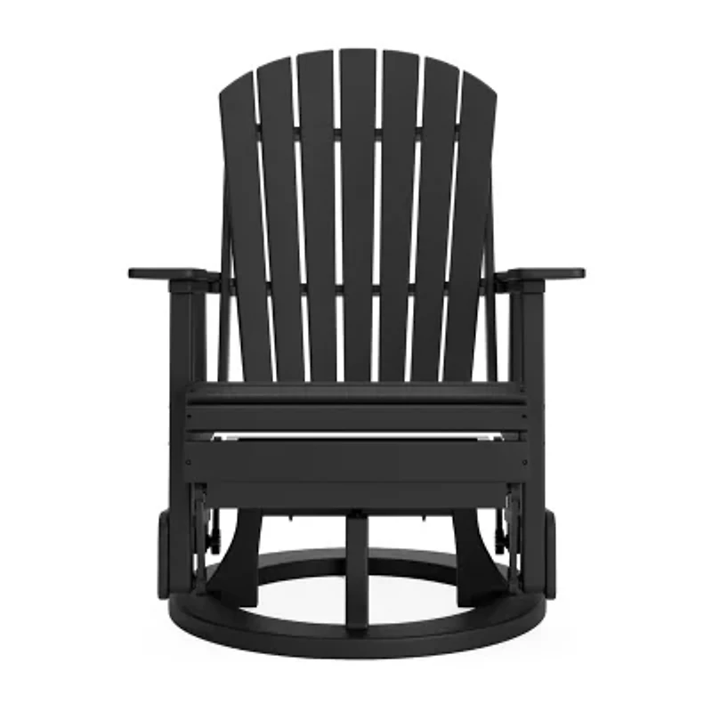 Drift away from everyday worries and into outdoor bliss with this swivel glider chair. Dressed in the smart color, the Adirondack-inspired design has a fresh feel. It weathers sunny summer days and cozy winter nights with durable MEGA TUFF™ HDPE material. When it comes to form and function, the chair's 360-degree swivel and rain-shedding slatted design simply go with the flow.