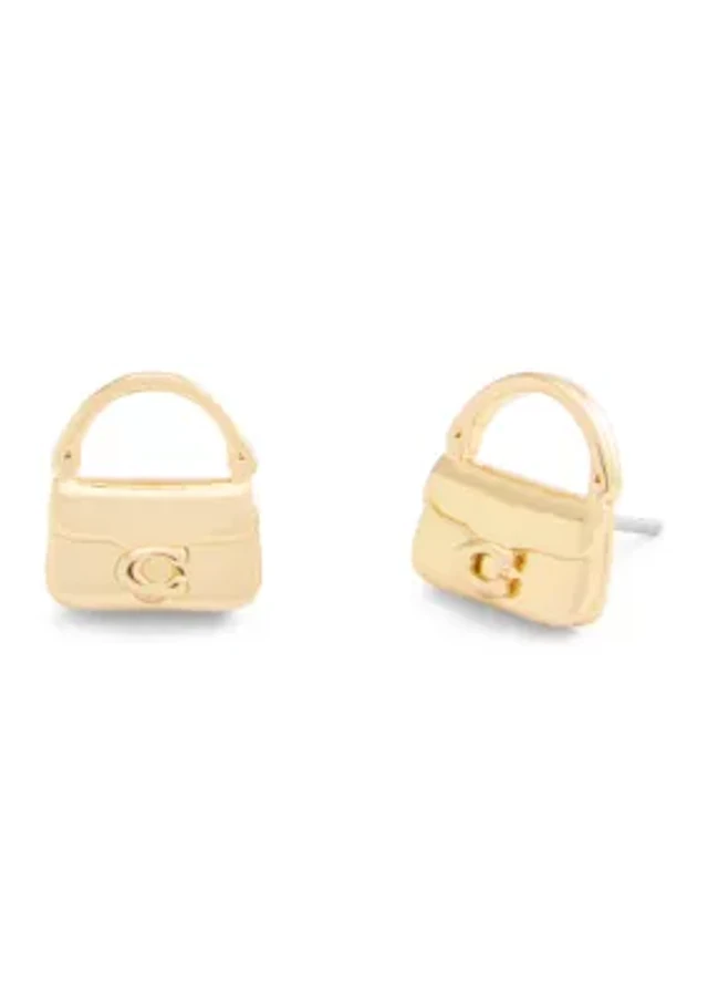 Coach Faux Stone Signature Quilted Heart Stud Earrings