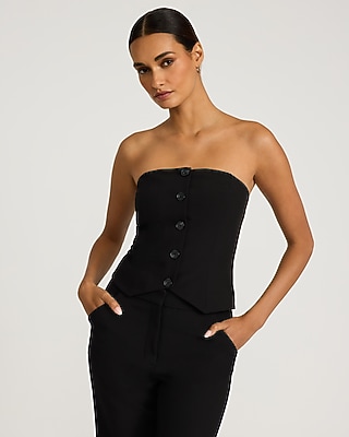 Signature Stretch Strapless Button Front Tailored Tube Top