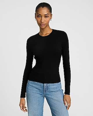 The perfect basic for endless wear, this fitted sweater is complete with a crew neckline and ribbed texture.