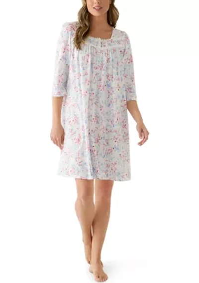 Miss Elaine Silky Knit Floral Print Short Sleeve Square Neck Short Nightgown