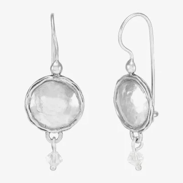 Silpada Womens White Crystal Sterling Silver Round Drop Earrings